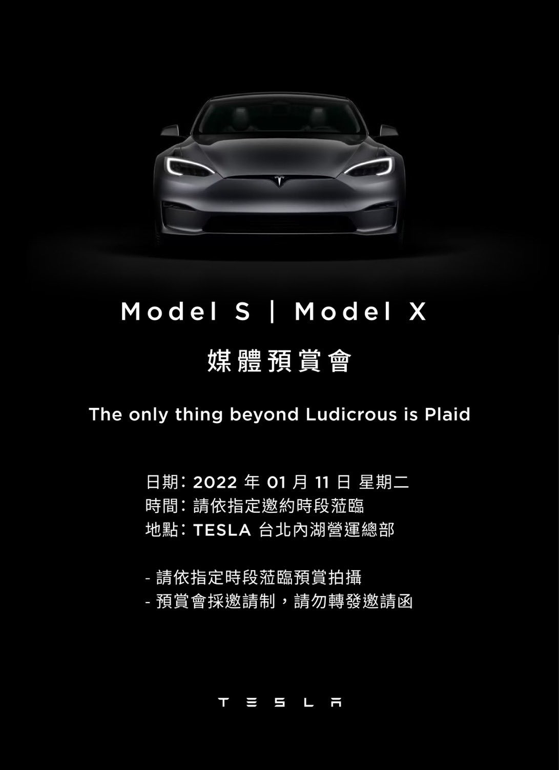 According to an invitation to a private viewing event at Tesla’s Taiwan headquarters in Taipei received by Tesla Owners Taiwan founder Michael Hsu (@hschumacher), Plaid variants of both vehicles be on display.