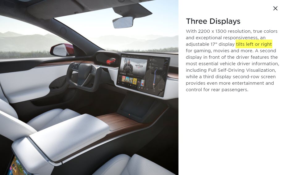 Earlier this week it was discovered that a Model S delivered on April 29 had a built-in screen tilt feature. The feature was originally promised when the refresh Model S/X design was announced in January 2021, but was removed from the website before deliveries began.