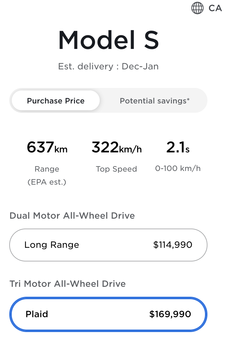 In Canada delivery wait times are estimated for December or January. In the US a Plaid variant can be in your driveway by September or October.