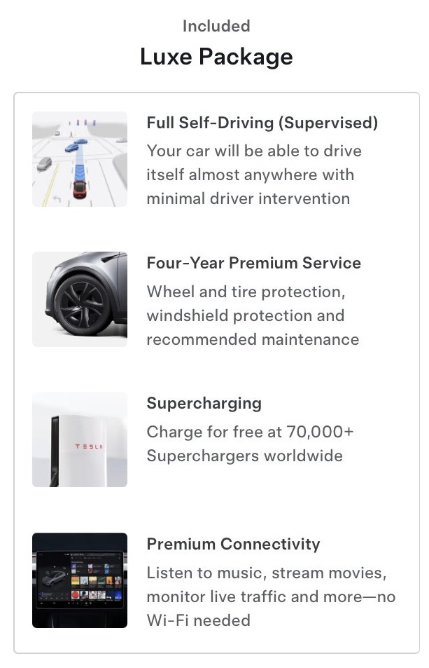 Raising prices doesn’t typically help with sales, but the Luxe Package provides a higher total value than buying each feature individually. For buyers planning to keep their Tesla for several years, the free Supercharging and Premium Service alone could offset a significant portion of the price increase.