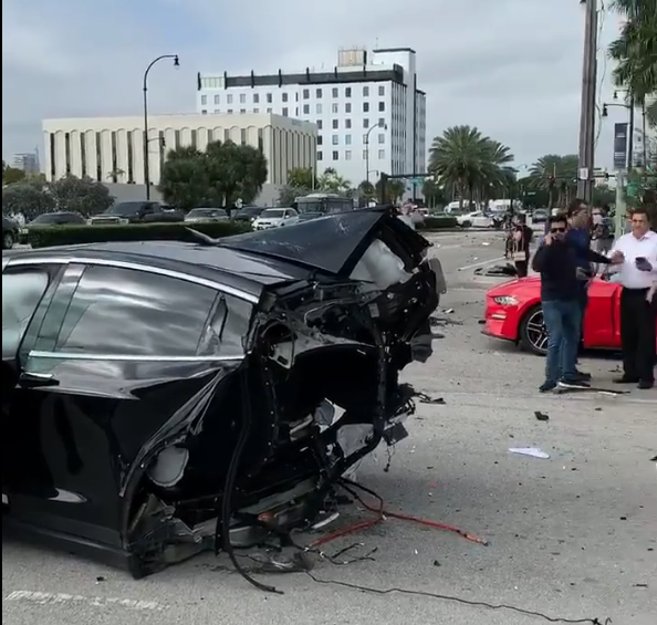 The accident occurred in Hallandale Beach, Florida, after a Nissan GT-R allegedly ran a red light before slamming into the rear of Model X at an extremely high rate of speed. Witnesses at the accident suggest the GT-R could have been travelling as fast an 100mph (160km/h) at the moment of impact.