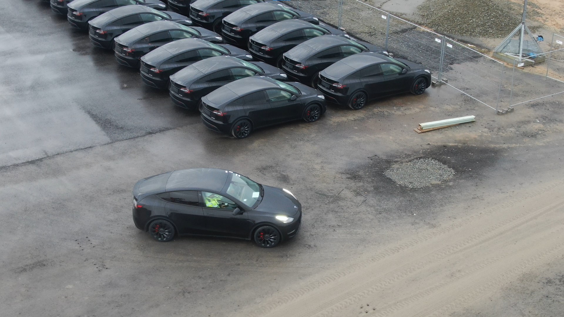 While Tesla waits for the final approvals from German officials, the factory is still producing Model Y test cars. A drone flyover from January 11 shows the parking lot now has more than 60 newly built Model Ys, the majority of which are black.
