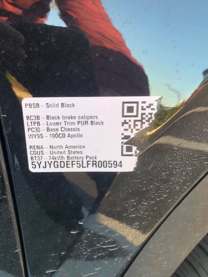 The LTPB code, which on this vehicle has an option of ‘Lower trim PUR black’, is the same as already seen on Model 3’s.