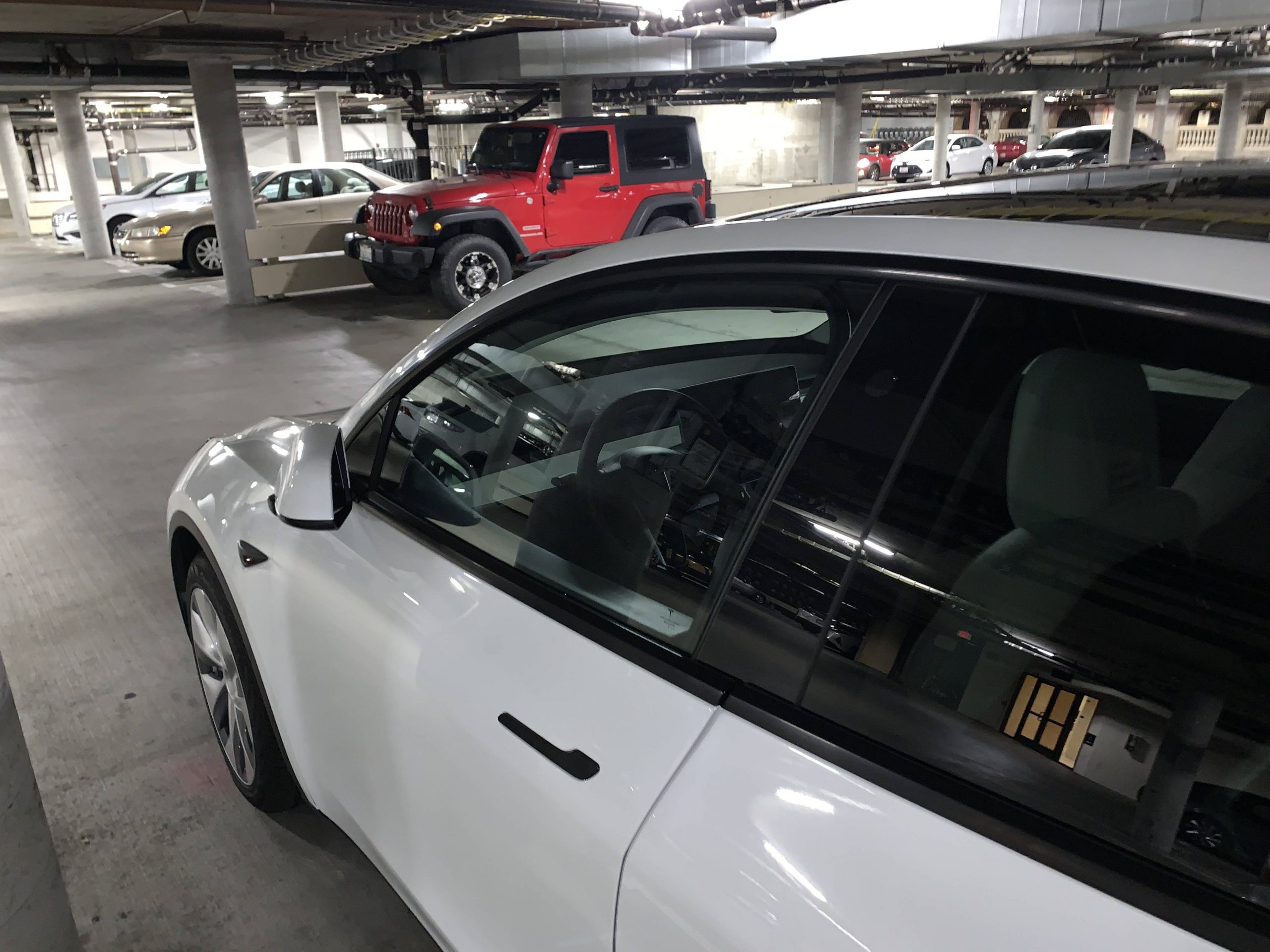 In the series of photos posted, we get an up close look at the window trim, which on the Model Y is no longer chrome like on the Model 3 (if you’re thinking of buying a DIY chrome delete kit, you’ll find big discounts on our Deals page). In the photos taken from a distance, the trim appears to have a glossy finish, but in the up close photos it appears to be more of a matte finish.