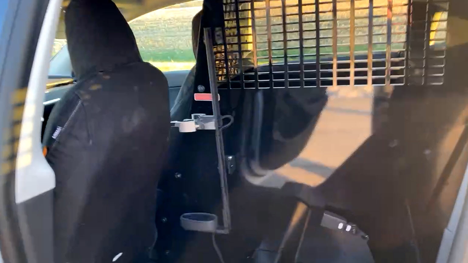 The Model Y has been outfitted with a LED light bar, push bar, prisoner partition, full markings, police computers, and a custom set of wheels.