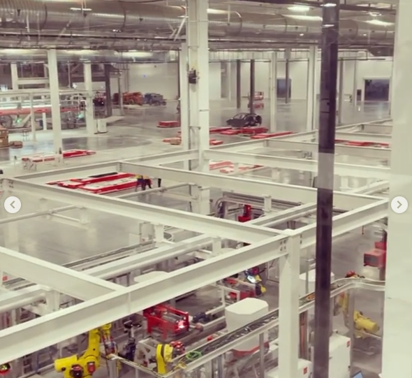 In the video we can see multiple Model Y cars on the production line, with one looking close to completion. Another two can be seen with no doors or wheels.