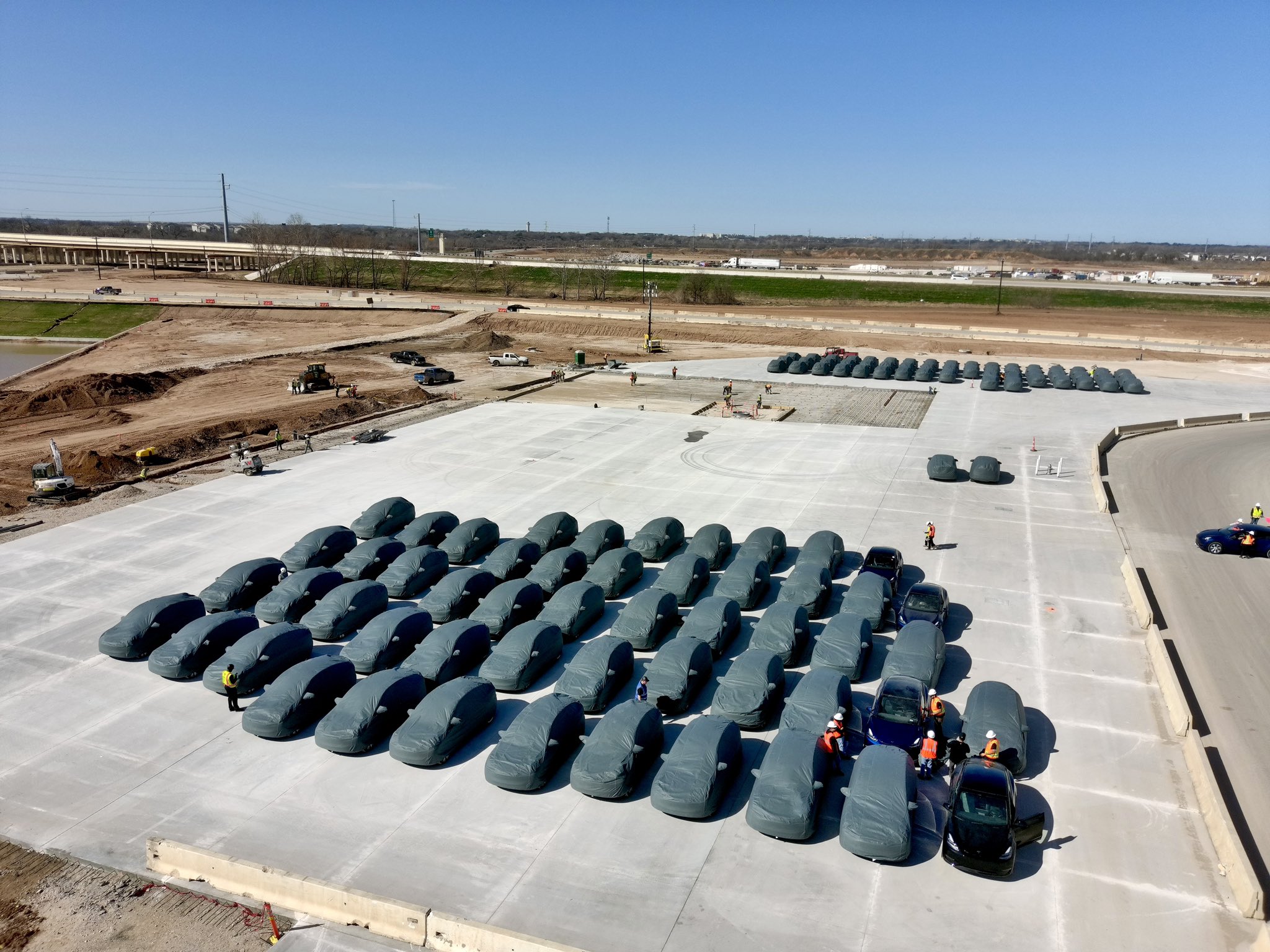 Not only is this the largest sighting of Austin-made Model Ys, it is also different from the others in that all of them are either under car covers, or in the process of being covered.