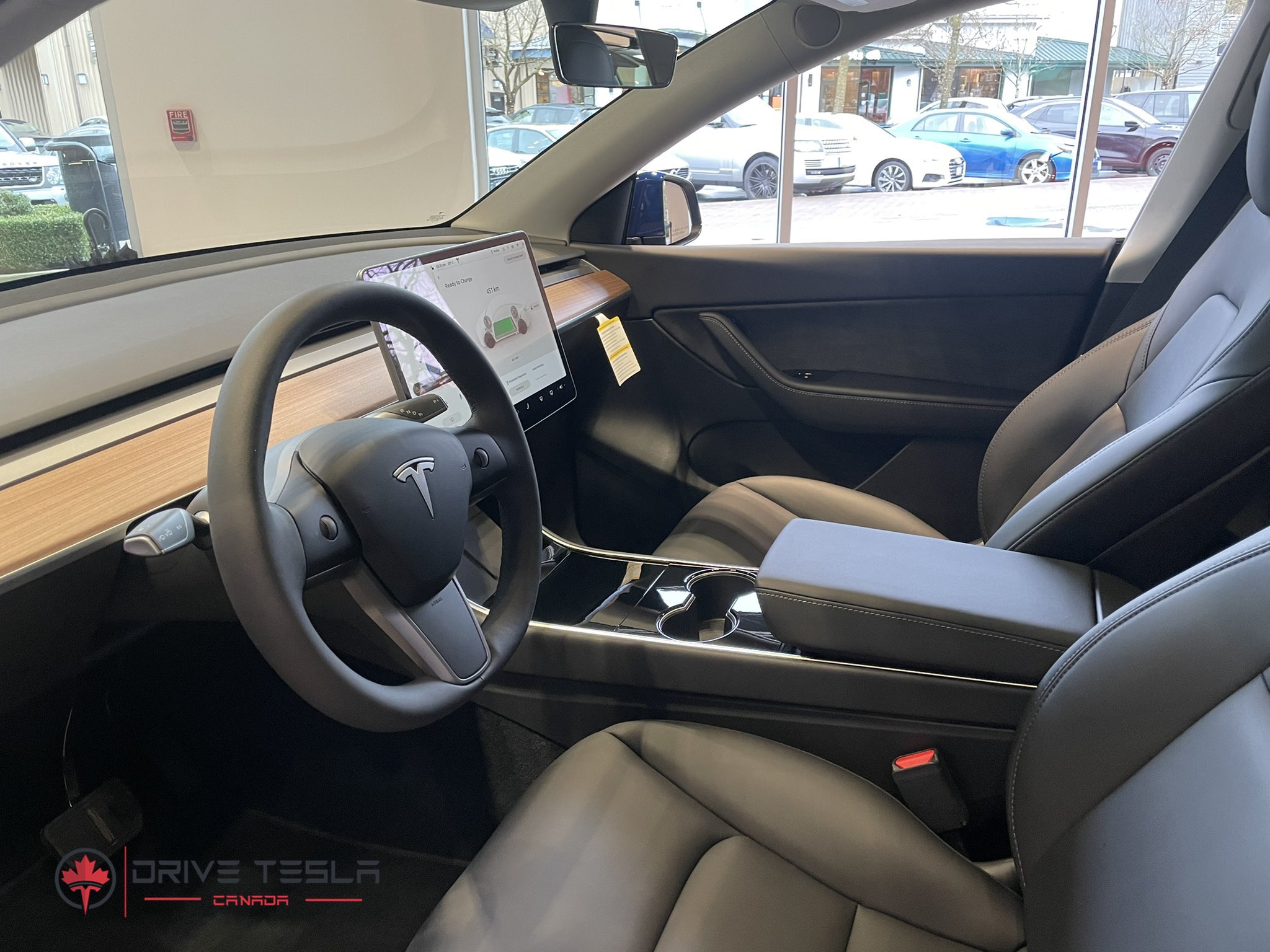The Tesla Park Royal store in West Vancouver now has a metallic blue 7-seat Model Y on display in their showroom. While the vehicle isn’t roped off, customers are unfortunately not allowed to sit in it.