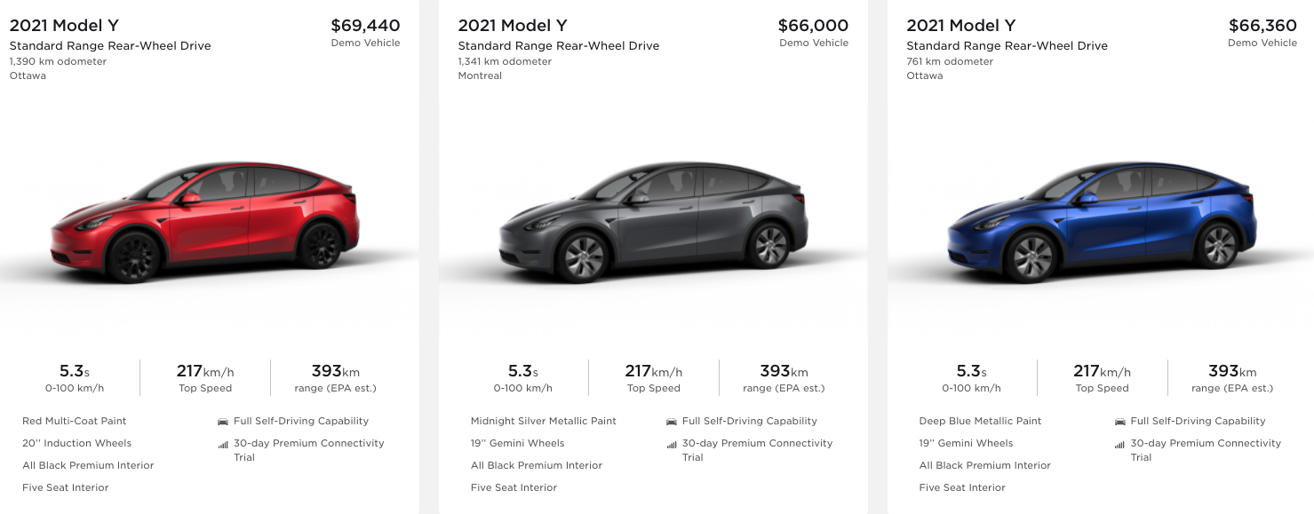 New vehicles that weren’t already allocated to a customer have all been sold. But you may have one more chance to buy the SR Model Y in Canada as demo vehicles (i.e. test drive vehicles) are now available on the Existing Inventory section on Tesla’s website.