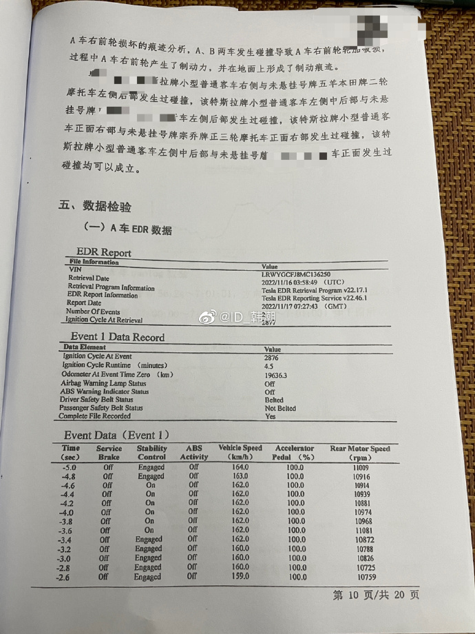 A forensics report made public on Wednesday found that the accelerator was fully pressed and no pressure was applied to the brakes the entire time during the incident, including in the last five seconds before the crash. The data also revealed the car reached a top speed of 164km/h just before impact. (via @Moneyball_R)