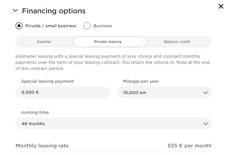 As with leases in North America, there is no buyout option and the car must be returned to Tesla at the end of the term.