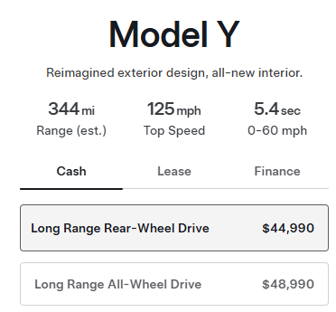 According to an update to the Design Studio on Tuesday night in the U.S., the RWD variant starts at US$44,990, or US$37,490 if you qualify for the $7,500 federal tax credit.