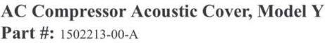 Update: The Tesla part number for the Model Y AC Compressor Acoustic Cover is 1502213-00-A.