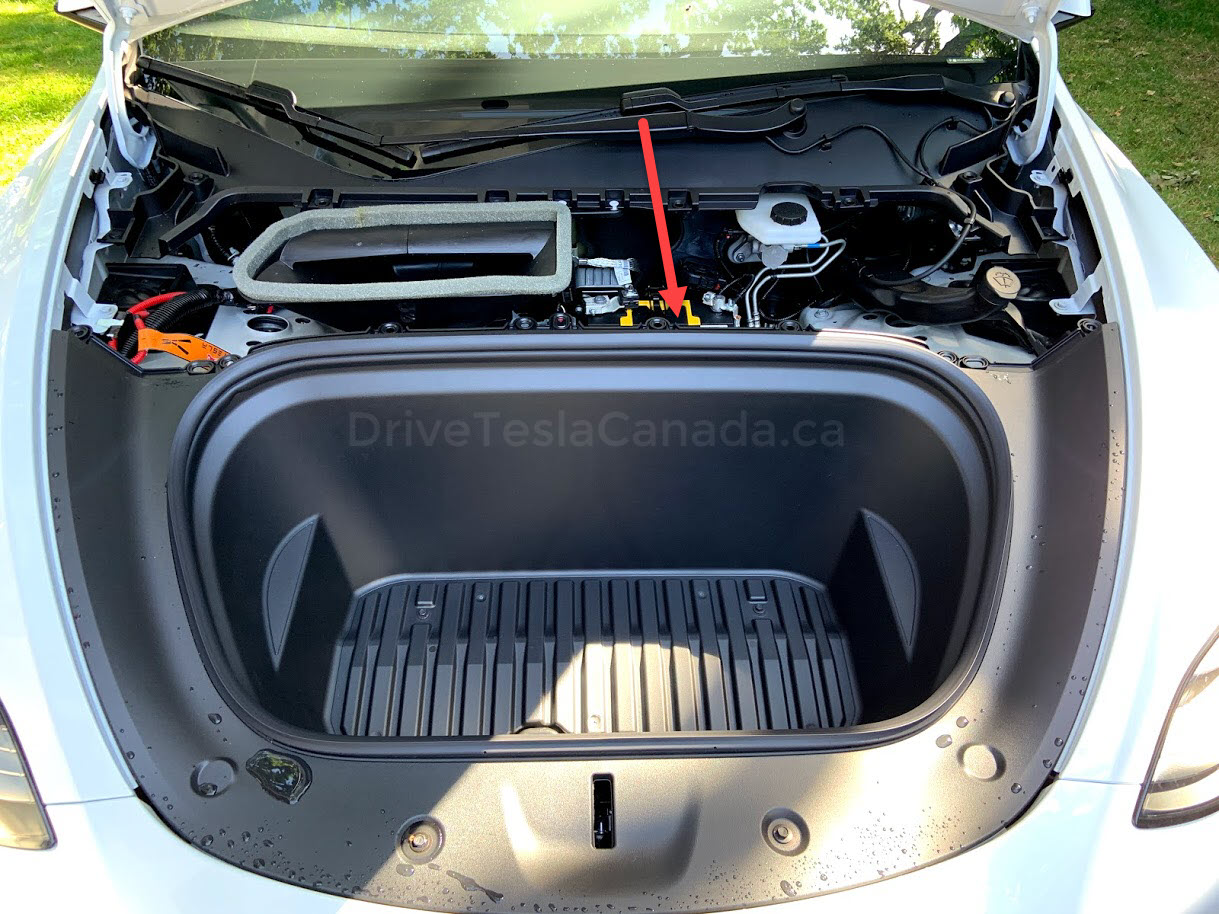 To do so, simply remove the top half of your frunk cover and take a look inside. The heat pump is orange and located on the right half of the frunk.