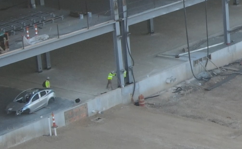 With no equipment visible anywhere near the Model Y, it appears as though work crews deliberately placed the car where it is for the multiple drone operators that fly over the site daily to film it.