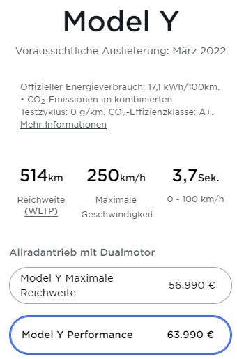 UPDATE 11:16pm PST: The German Design Studio is only displaying March 2022 for black and white Performance Model Ys. It was previously suggested that Giga Berlin will start production with these colours. This all but confirms Tesla is now estimating March deliveries for Giga Berlin made cars. (h/t: @tesla_adri)