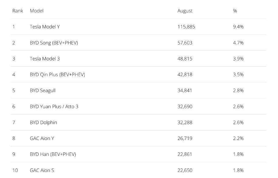 Tesla Model Y became the best-selling electric car in the world in August, selling twice as many vehicles as its closest competitor, BYD Song. Thanks to unstoppable sales growth from Tesla and several other manufacturers, global sales of electric vehicles have reached 18%.