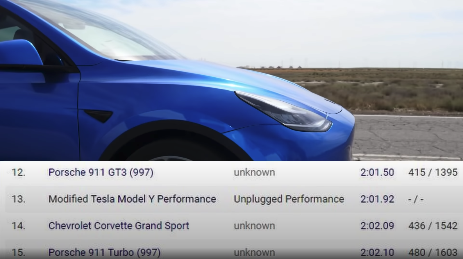 Surprising many at the track, the tuned Model Y completed its fastest lap in an eye-popping time of 2:01.92, setting a new record for SUVs at the track.