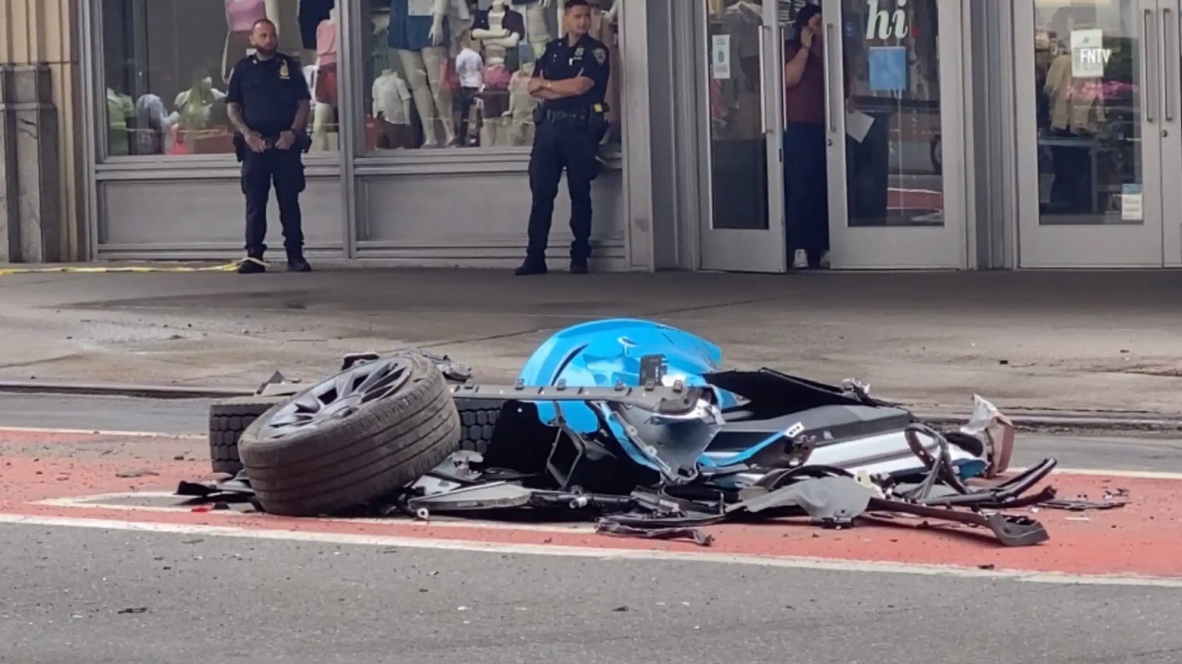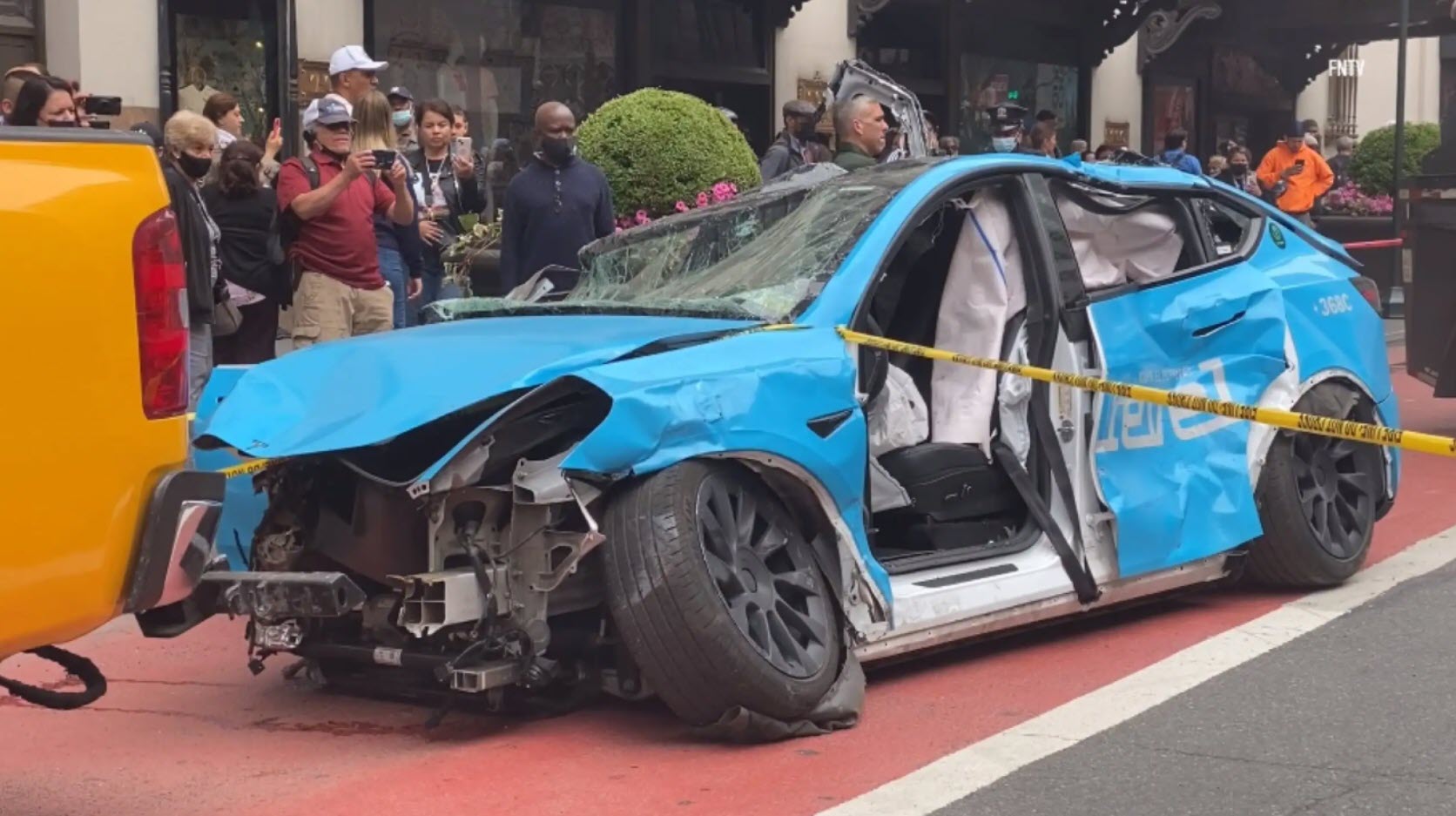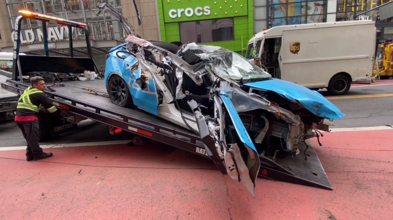 The accident took place at 34th Street and Seventh Avenue, where the baby blue Model Y was travelling at an estimated 70mph (112km/h) before colliding with a UPS truck parked on the side of the road.