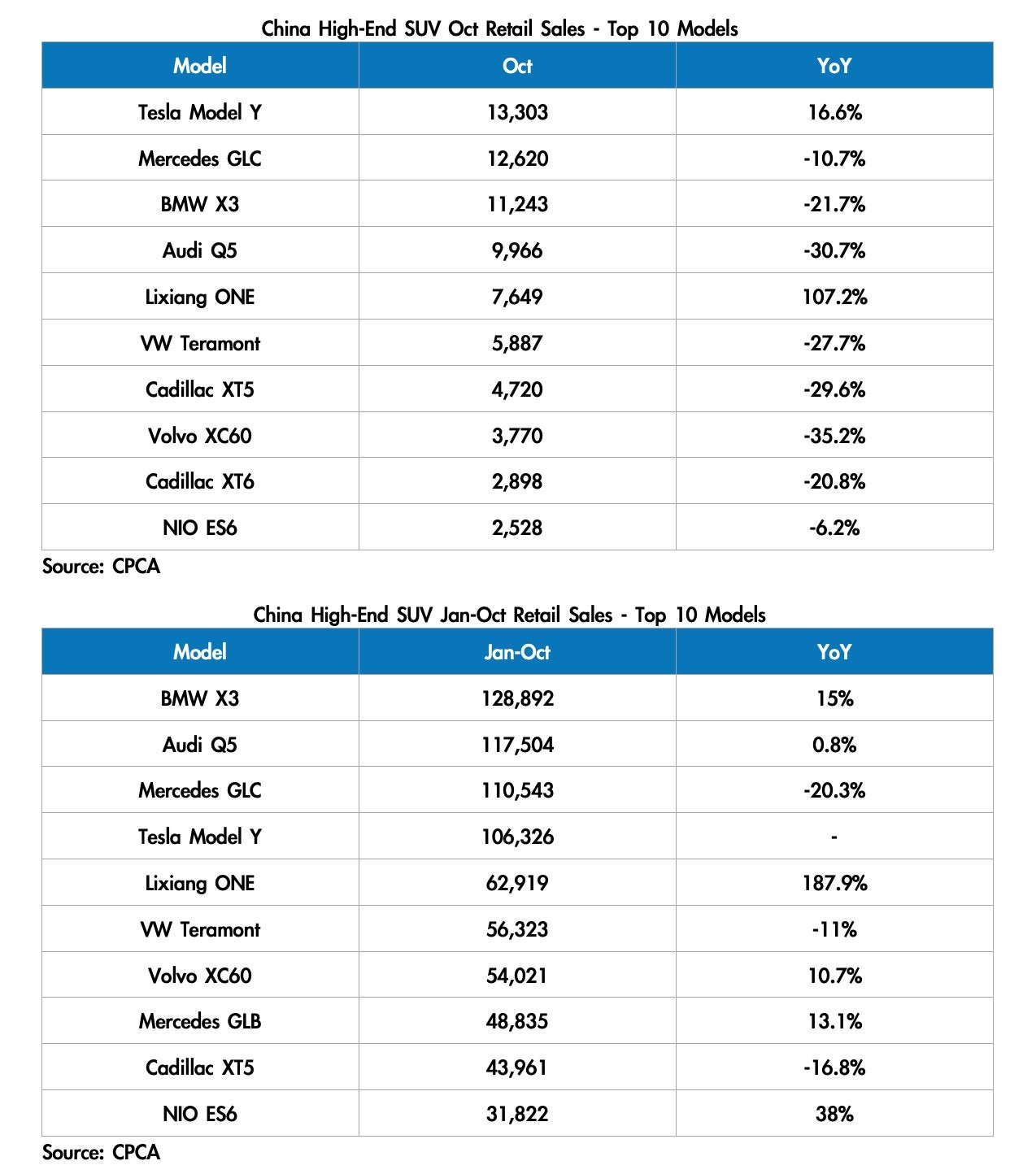According to data from the China Passenger Car Association (CPCA), a total of 13,303 Model Ys were sold in October. That figure was a 16.6% increase compared to the same month last year.