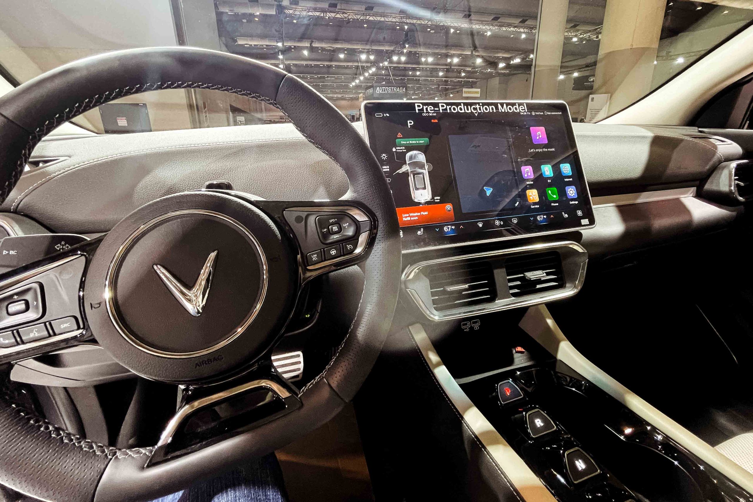 One of the highlights with the vehicle displays, and biggest surprises, was the huge presence from VinFast. Most North Americans may not be familiar with this Vietnamese company but they have been producing cars since 2017and are the best selling car in Vietnam. They have now transitioned to fully electric models and are looking to make a splash in the North American market. On display were the VF8 crossover and the larger third row seater VF9. They also displayed their upcoming models, the subcompact crossover VF6 and compact crossover VF7. All of their models have a very stylish look both inside and out. The interior felt luxurious with leather wrapped panels present throughout the cabin as well as a large Tesla inspired center screen. Speaking of Tesla inspiration, I found VinFast to be the only manufacturer to really embody the minimalistic feel. One thing I noted with the VinFast interior is the gear selectors which is a row of large, incongruous buttons running alongside the cup holders of the center console area – I wasn’t a fan. It seemed counterintuitive to the whole minimalistic look. Overall, though the VinFast surprisingly offered one of the better interiors of the show.