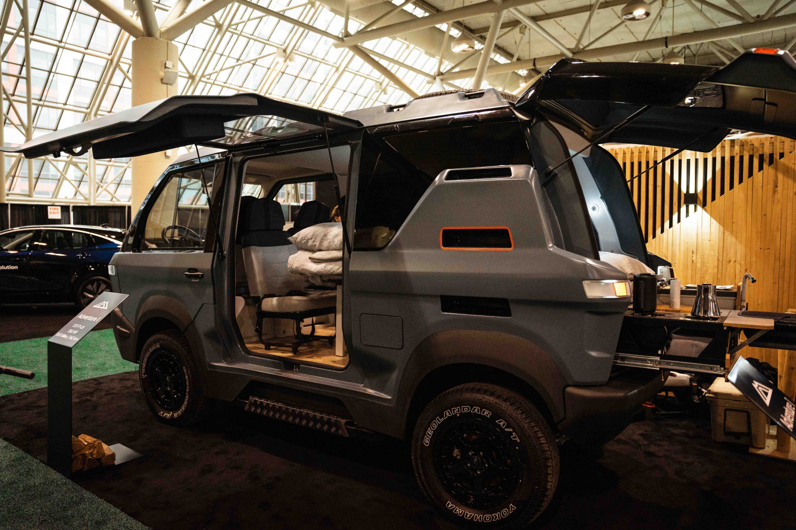 Another small Canadian start-up is Potential Motors out of New Brunswick. They are at the Auto Show with their unique electric motorhome. This rugged beast is geared toward the adventure camping crowd who want to go off-roading but still camp in luxury. The vehicle features a thin chassis ideal for narrow trails. It also features oversized rugged tires, a full-sized double bed (which folds away when not in use), a complete pull-out kitchenette, 40 liters of onboard water storage, roof storage, and huge gull wing side doors which make Tesla’s Model X look almost miniature. Range sits at a paltry 160 km, but it’s considered a recreational vehicle so you’ll most likely be towing this thing and then driving it the last little bit. The initial purchase price of the first 100 units is set at a whopping $136,000 USD, which is hard to justify for a recreational vehicle but I love the concept.