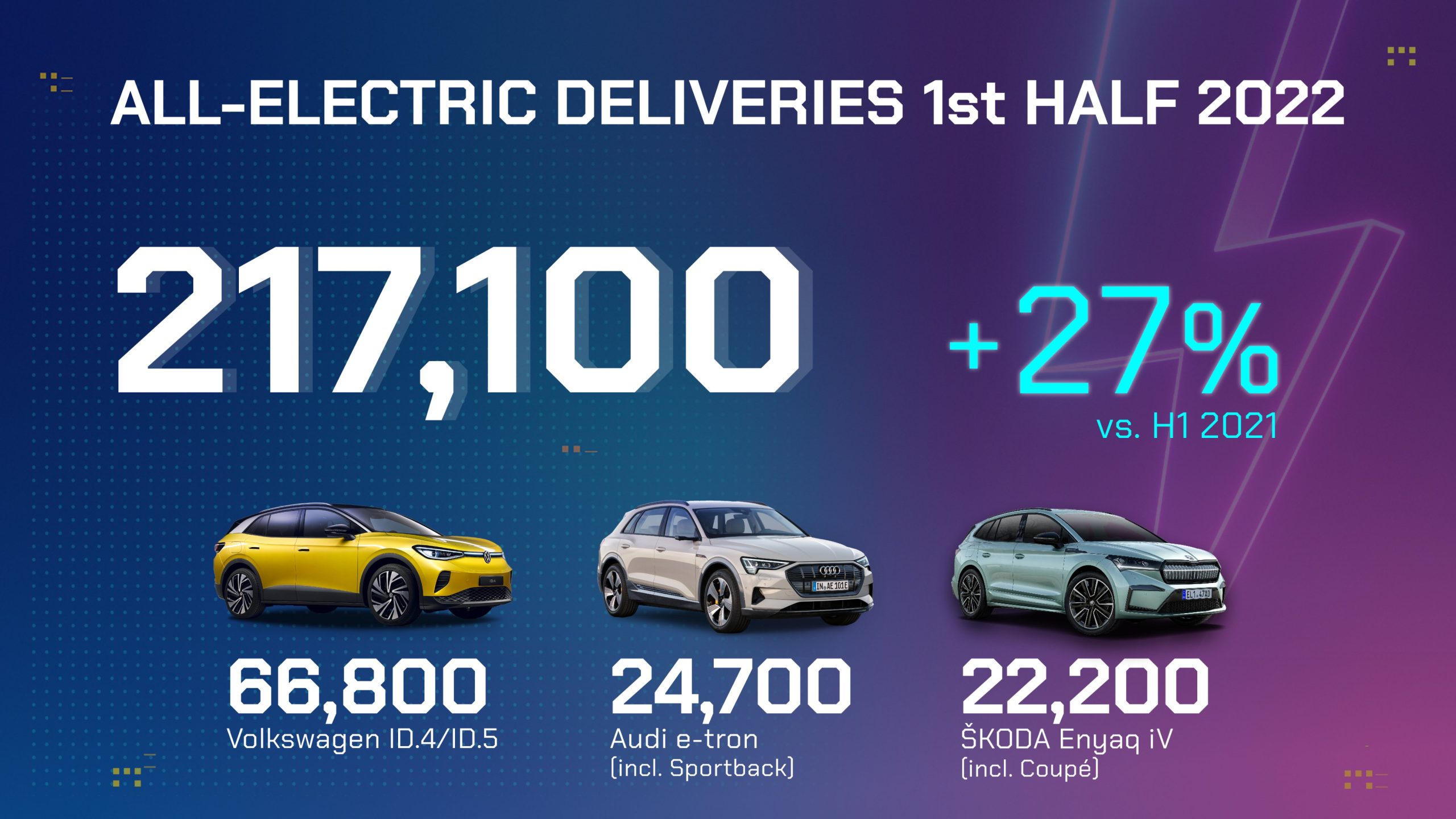 Volkswagen Group has reported their battery electric vehicle (BEV) sales on Friday, and in the first half of 2022 the German automaker was able to grow their BEV deliveries by 27% year-over-year (YoY).