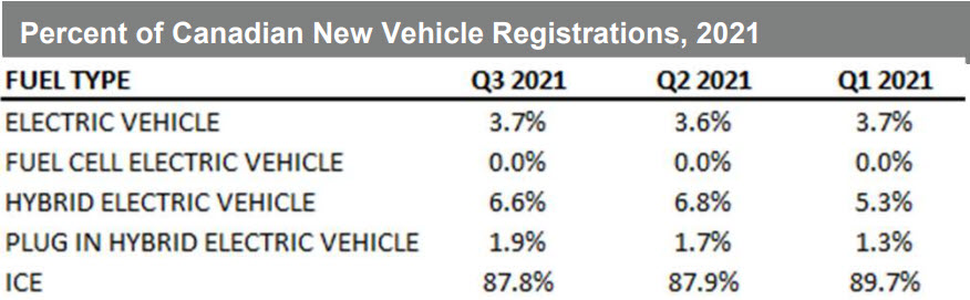 Showing the effectiveness of rebates in increasing ZEV sales, Ontario was below the national average with just 3.1% ZEV registrations in the quarter. The most populous province in Canada has no provincial incentives.