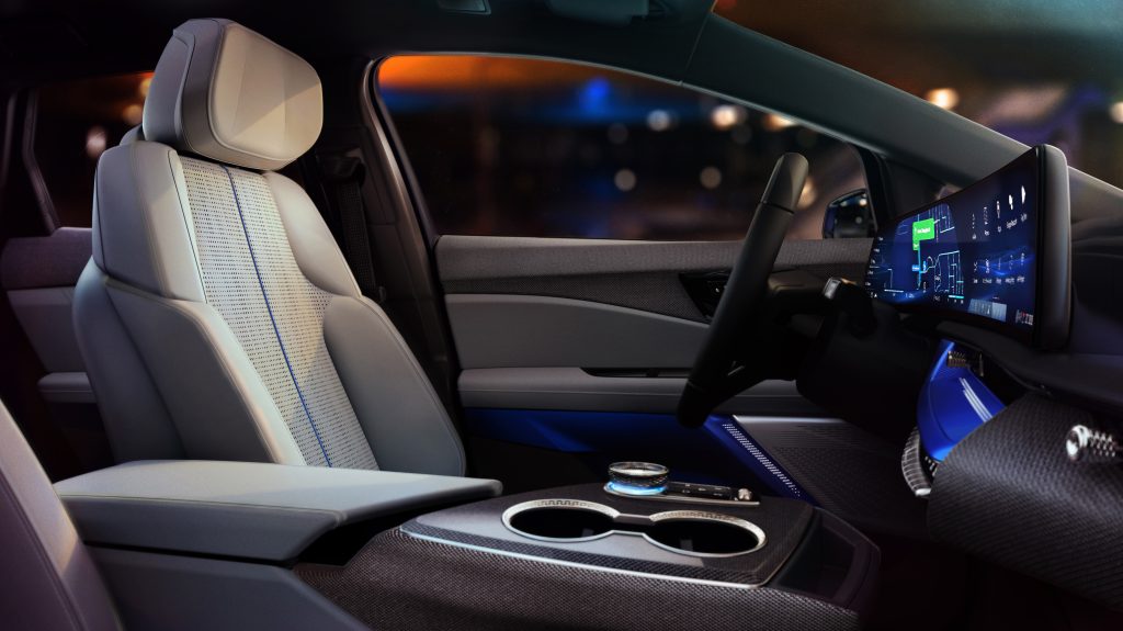 Internally, the Optiq boasts a spacious cabin with a large 33-inch diagonal LED display, stretching nearly across the entire dashboard. The interior also features a number of recycled materials for the interior accents, such as the patterned fabric and PaperWood veneer.