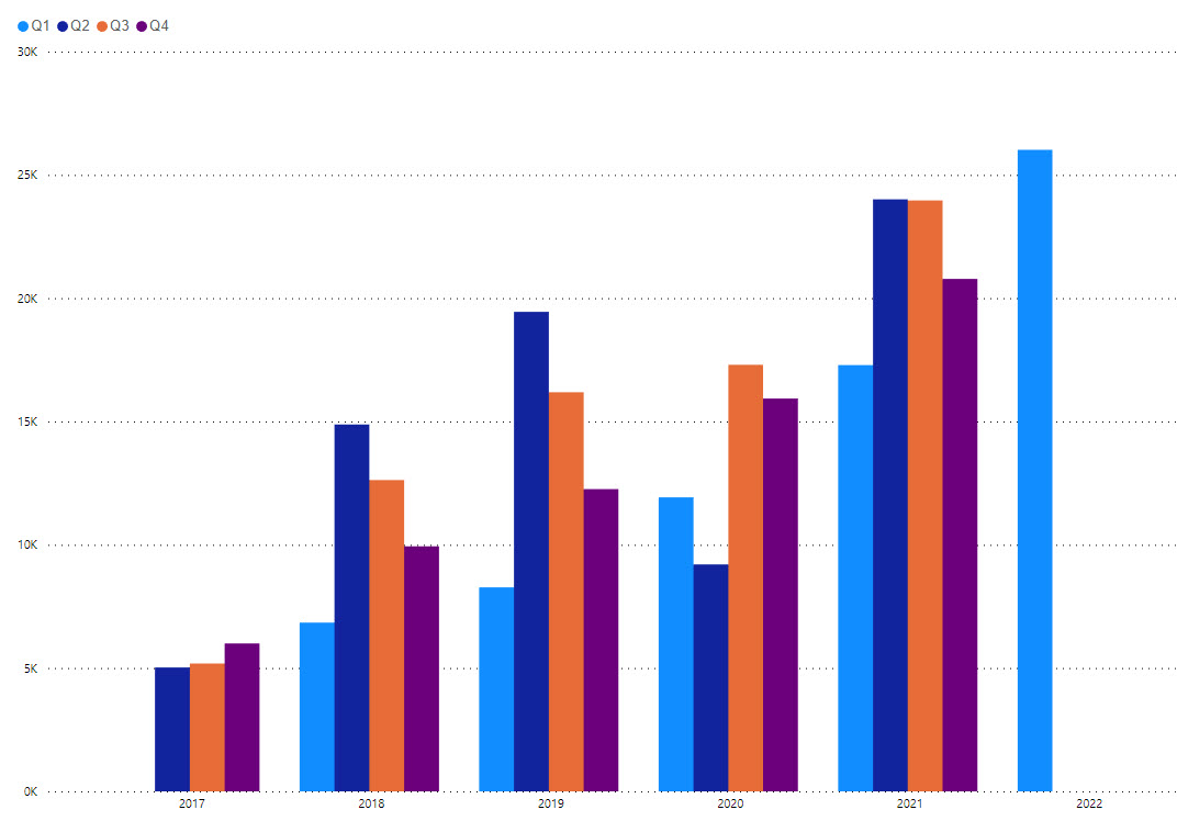 Not only is that an increase YoY, it is also a 25% increase over the previous quarter when 20,779 new ZEVs were registered. It is also the highest number of ZEVs ever registered since the federal agency began tracking the numbers in 2017.