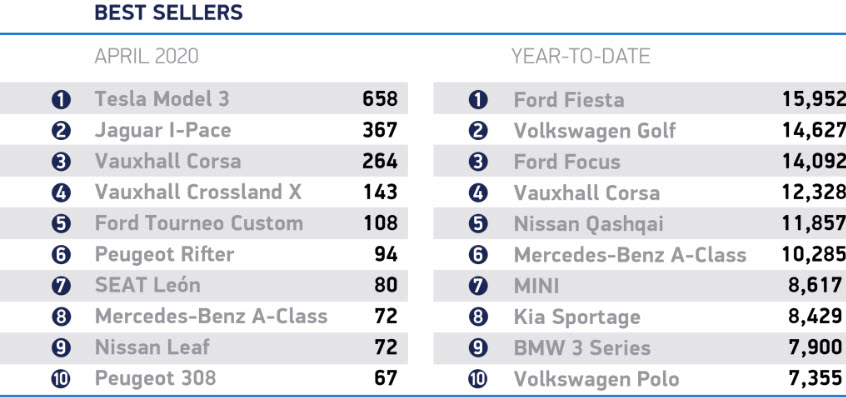 April UK Car Sales Best Sellers