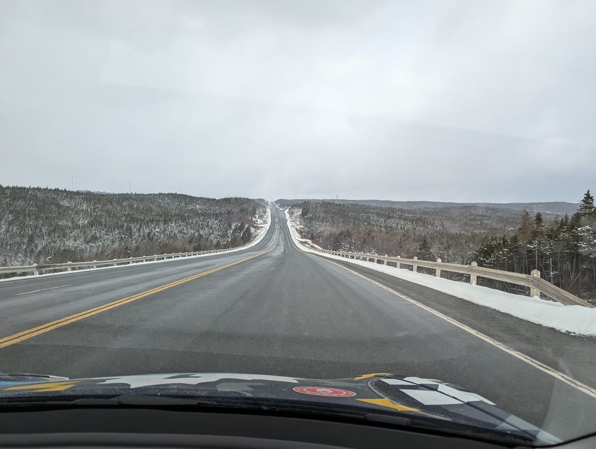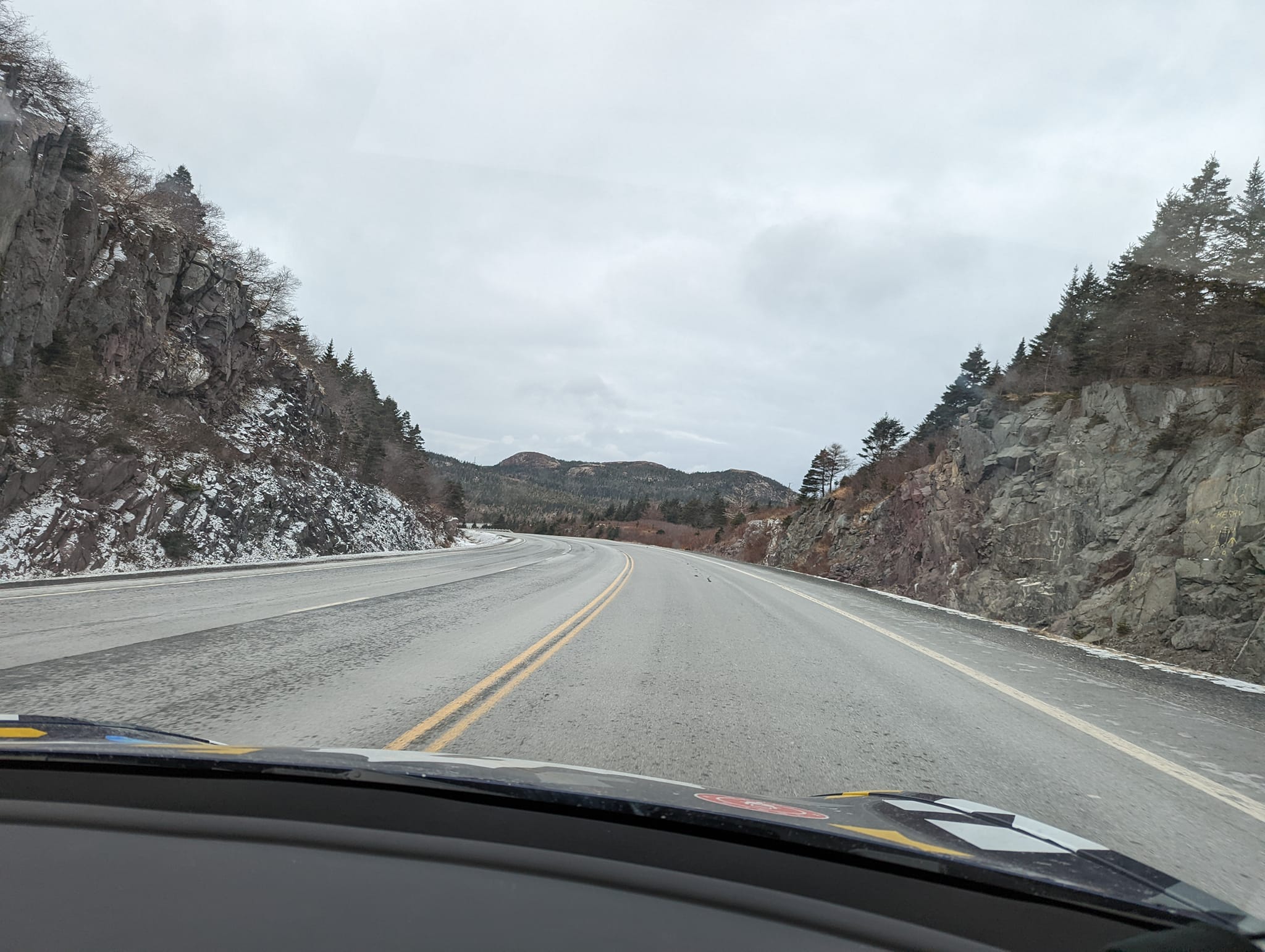 We managed to get a cabin on the ferry and slept for a few hours. Getting through the Covid procedures at Port Aux Basques resulted in a bit of a delay but we were soon on the road. We check the ferry dock area so we would be familiar with the return trip and started to drive to Corner Brook 226kms away with -12 temps, snow covered roads and strong winds.