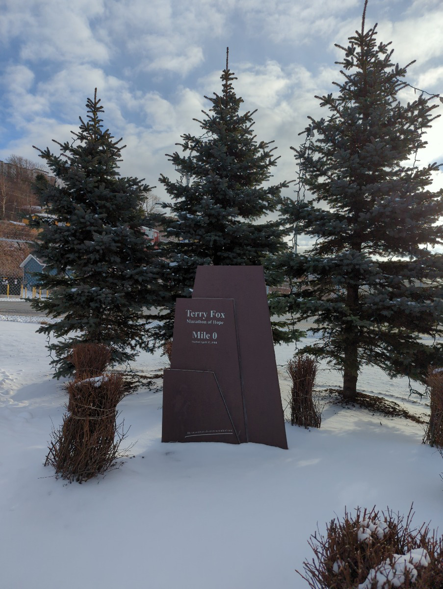 We grabbed just enough at the crippled charger to get Grand Falls – Windsor. Came in with a carefully calculated 5% of battery and temp of minus 5.