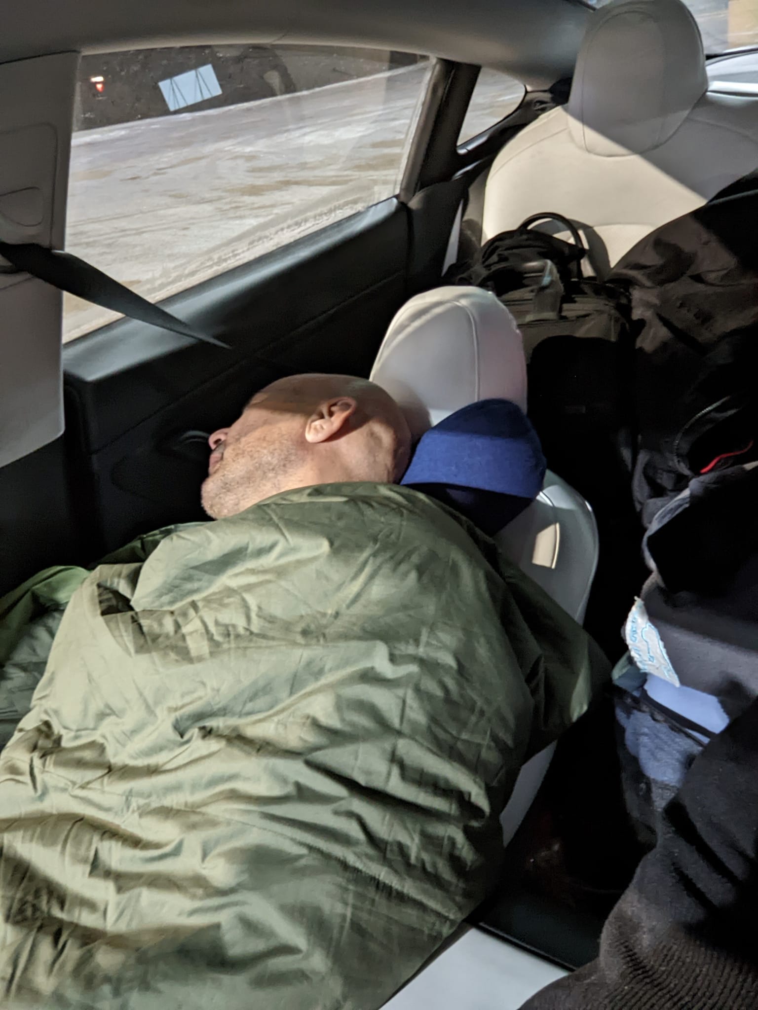 Night shift. Sleep while charging. Switch drivers. Go. In Levi’s, Quebec.