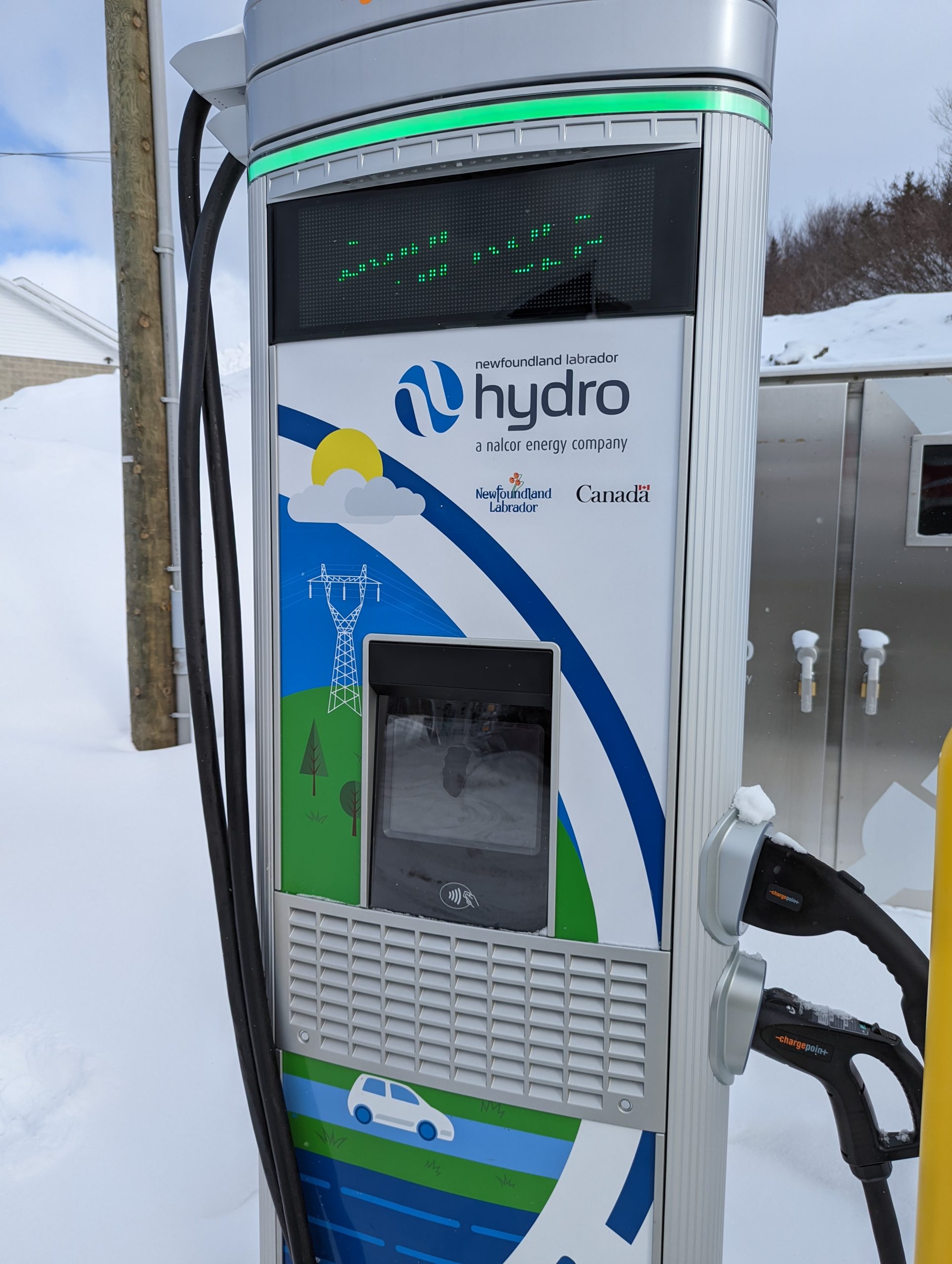 We also have to time the charging stops so that we have a long charge in Deer Lake. That way we can make the ferry efficiently in the final leg today.