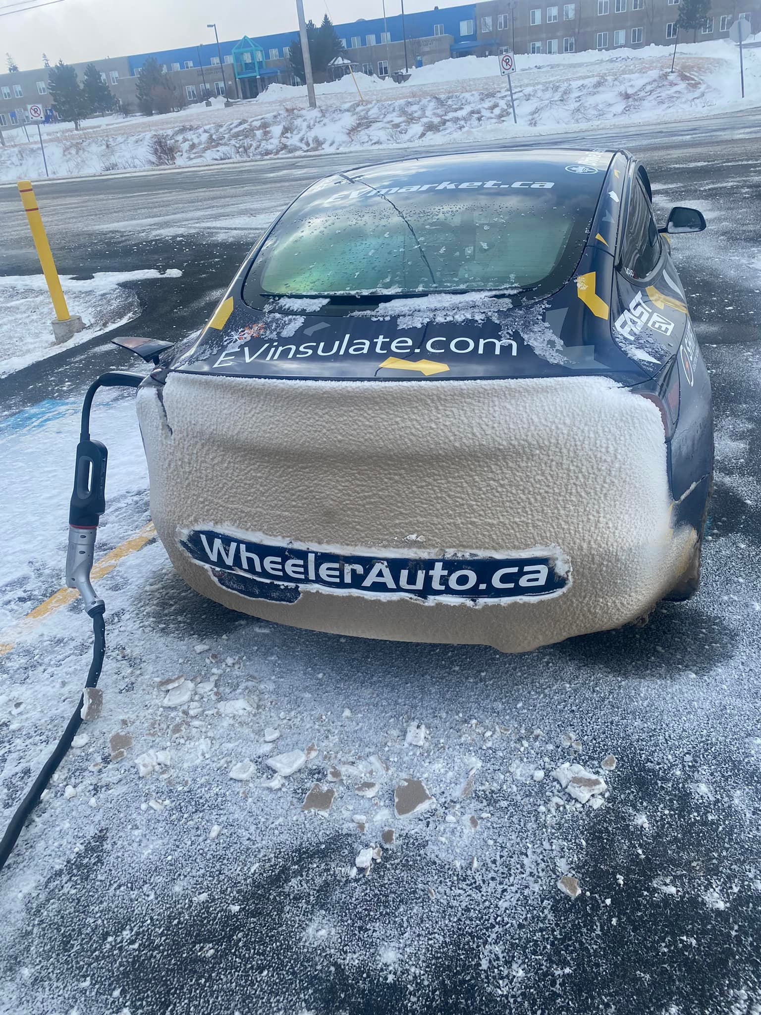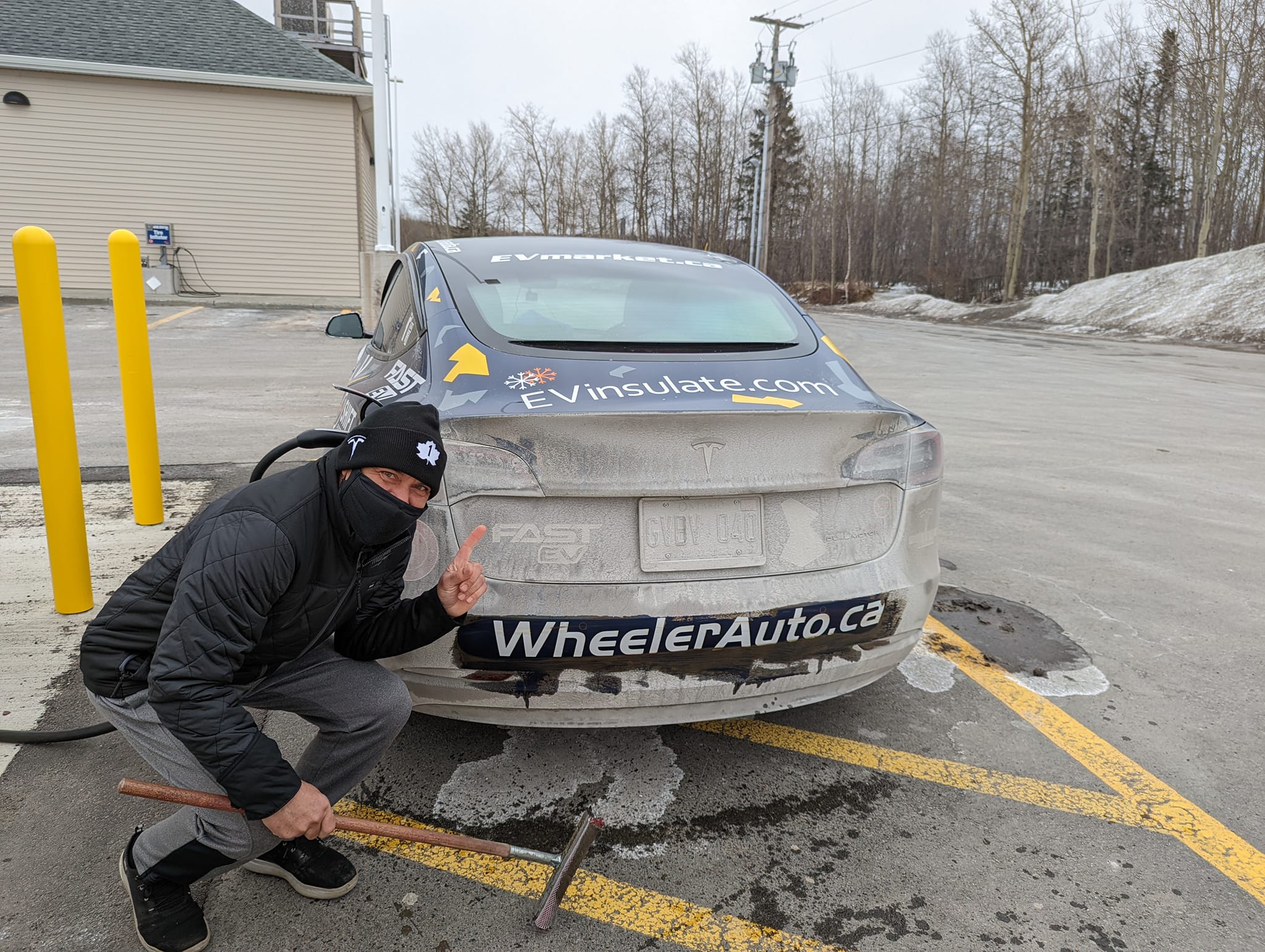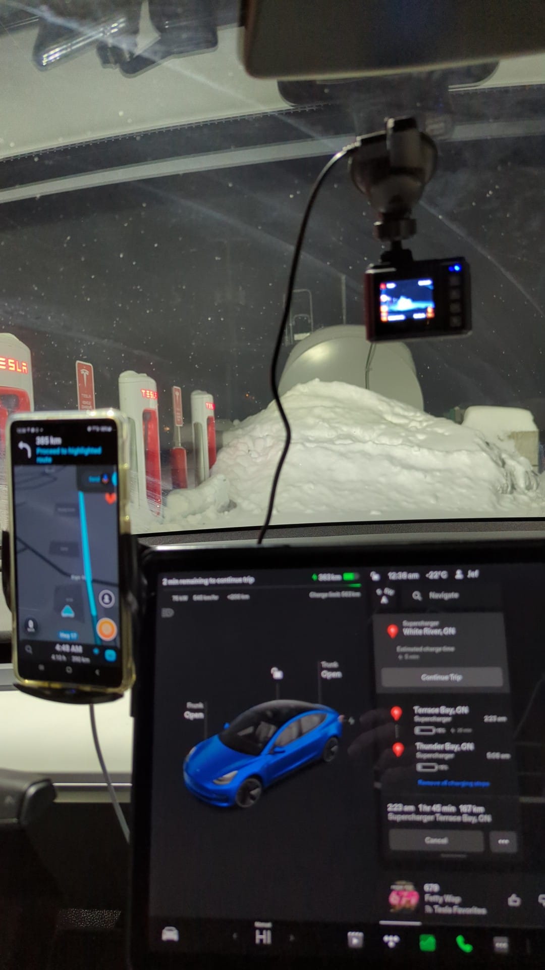 Sometimes compromises are necessary. We borrowed a Petro Canada charger, grabbed a quick hot shower, and bypassed the charger in Winnipeg and hit the road again. Wicked head wind on the Prairies so need to keep a higher buffer at -15 as it will get colder.