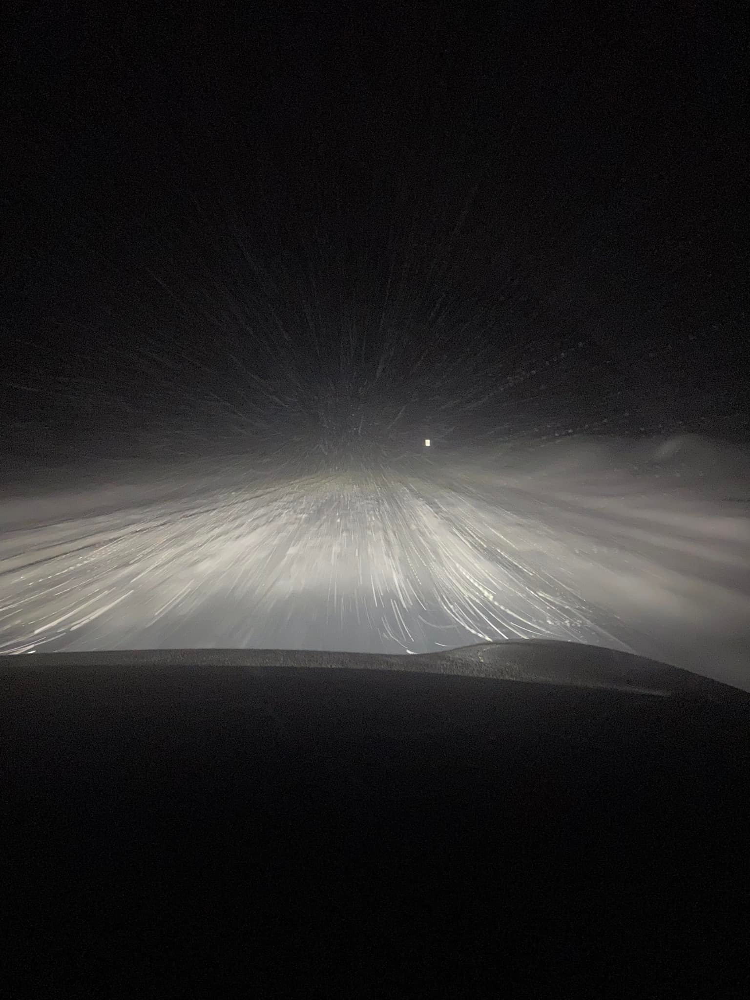 Driving through the second day of blizzards snow squalls and snow drifts. Always remember to clean your tail lights when the going gets white.