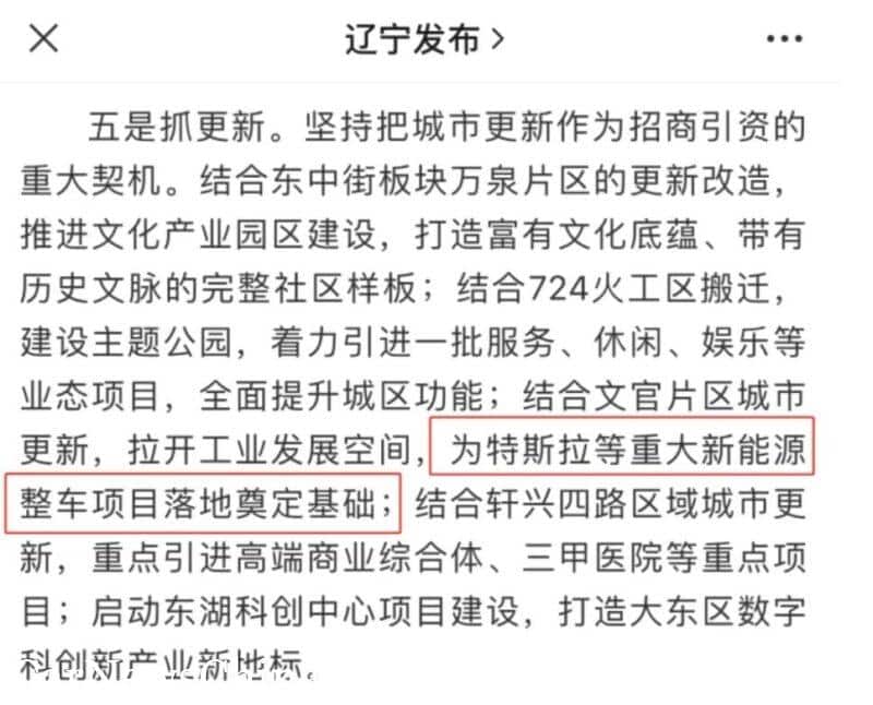 Shenyang gov microblog admin removed the post on Tesla major project.