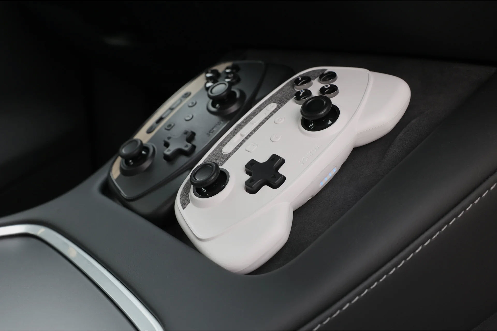Take your Tesla gaming experience to the next level. Available in three different colours, these controllers connect via Bluetooth and work seamlessly with Tesla’s built-in games. You can pair and connect up to four controllers with the available USB dongle and hub to play the new Boomerang Fu game with your friends! They even charge wirelessly on the charging pad in your Tesla.