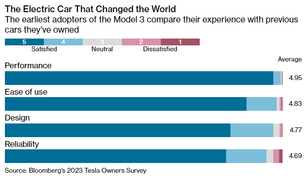 Five years ago, Tesla launched the Model 3 for the mass market. When Bloomberg repeated a survey of Model 3 owners, the results differed from half a decade ago; Elon Musk has lost fans, but the Model 3 still commands the love of its owners.