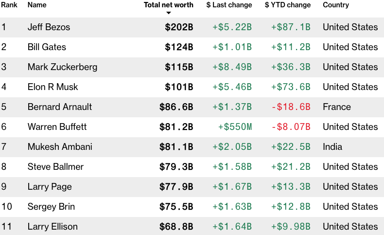 According to Bloomberg’s Billionaire Index, Musk is now worth over $100 billion, with a staggering $74 billion increase this year alone.