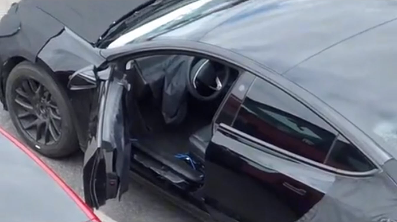 For the last few months we have seen several Project Highland test cars driving around the Bay area near Tesla’s Fremont factory. All of these cars have had camouflage on the front and rear of the vehicle to hide any new design features (although we have seen a leak of what the front looks like). Along with the camouflage on the outside of the car, the interior has also been covered up, not revealing any clues as to what changes may be taking place on the inside.