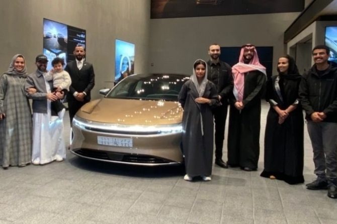 Since the company has only just started production a little over two weeks ago, there is only one-production Lucid Air Grand Touring on display.