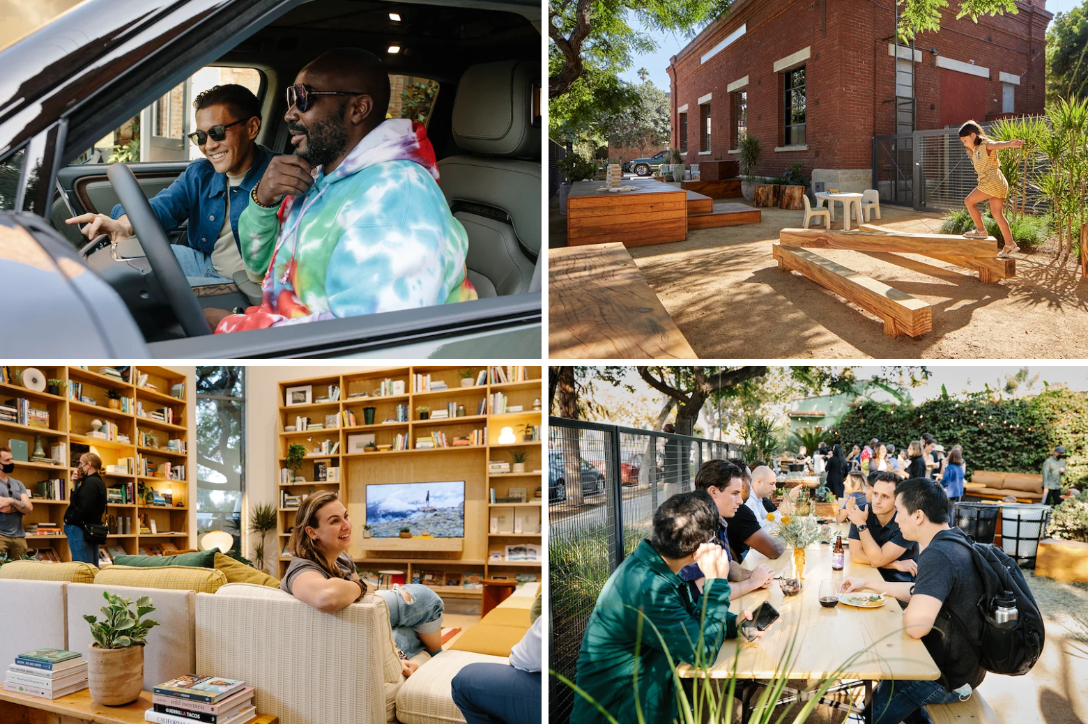 The Venice Hub is comprised of shaded gardens and seating out front, an open-air play space for kids, a library deep in both local and iconic titles and locally made wares, a bright makers’ space stocked with creative materials, and a courtyard area between the site’s two buildings where you can explore an R1T and ask any questions you might have about Rivian’s mission, products and programs. The Venice Hub will also offer a host of workshops focused on useable knowledge (plant a simple organic garden this fall, or learn how to get the most of your visit to a National Park) and discussions about broader concepts such as sustainable energy or permaculture.