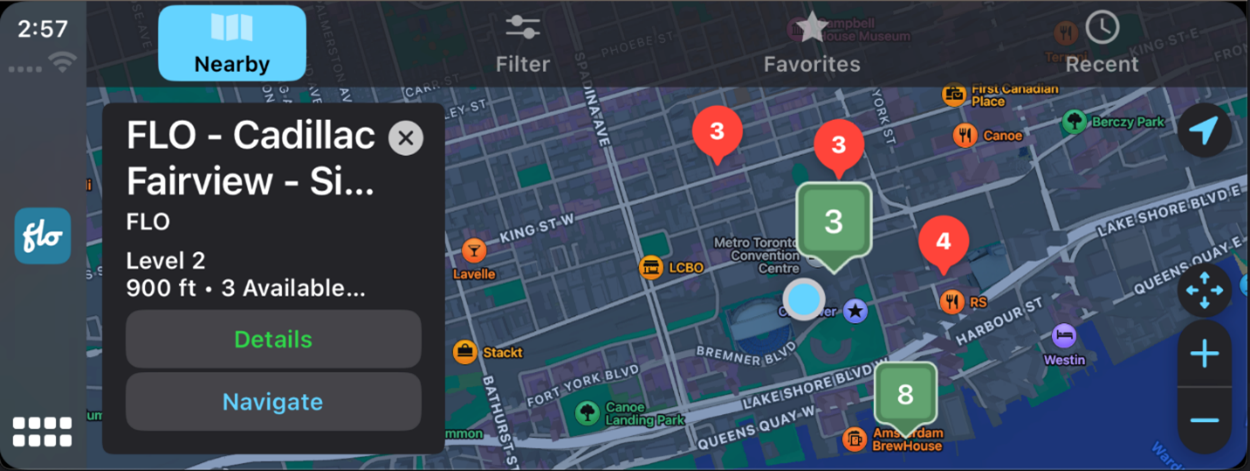 According to the company’s website, FLO users can find nearby stations, filter stations by charging speed, fee, plug type, or availability through the in-car display on vehicles that have Apple CarPlay or Android Auto pre-installed.
