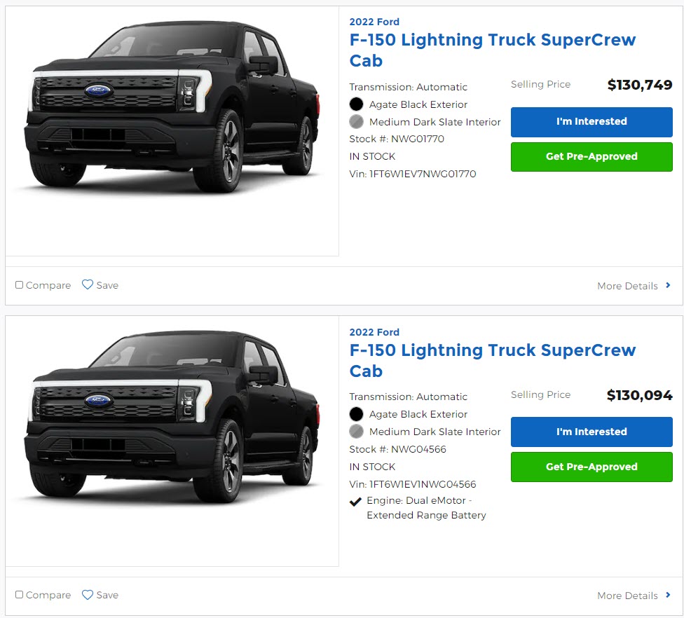 The deals don’t stop there. According to their website they also have another two Lightnings in their inventory for $130,749 each, a $15,000 discount compared to the EV above.