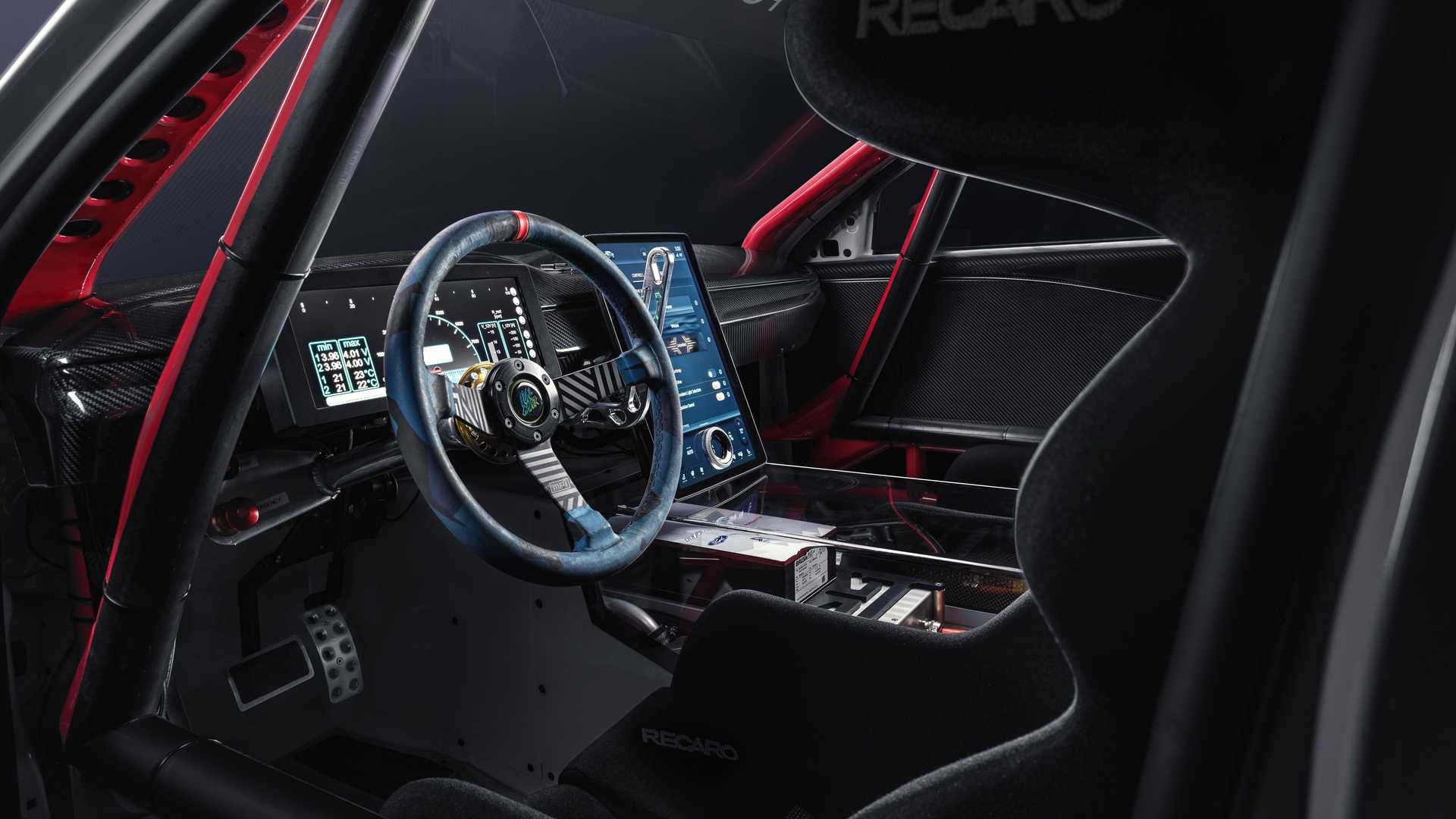 It also has a total of 7 electric motors, three at the front and four at the rear, which produce over 1,400 horsepower “under the hood”, which itself is made of organic composite fibers to reduce weight.