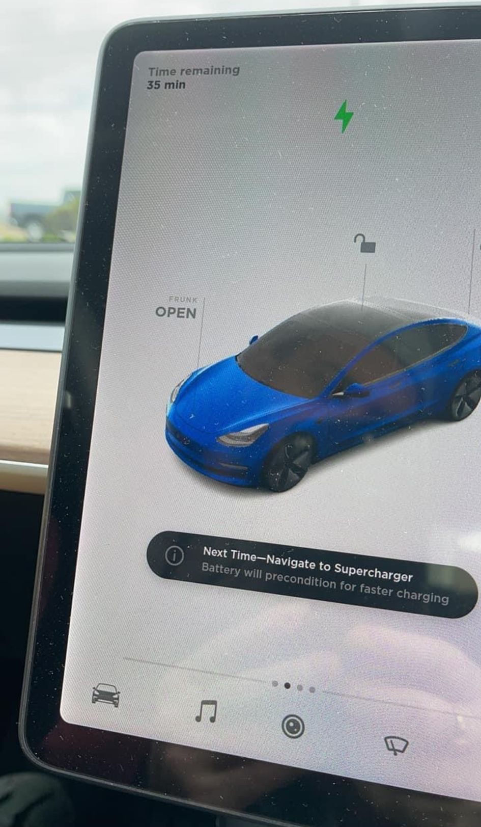 This allows for an optimal Supercharging experience, as a warmer battery will charge faster and more efficiently, meaning less time “at the pump.”