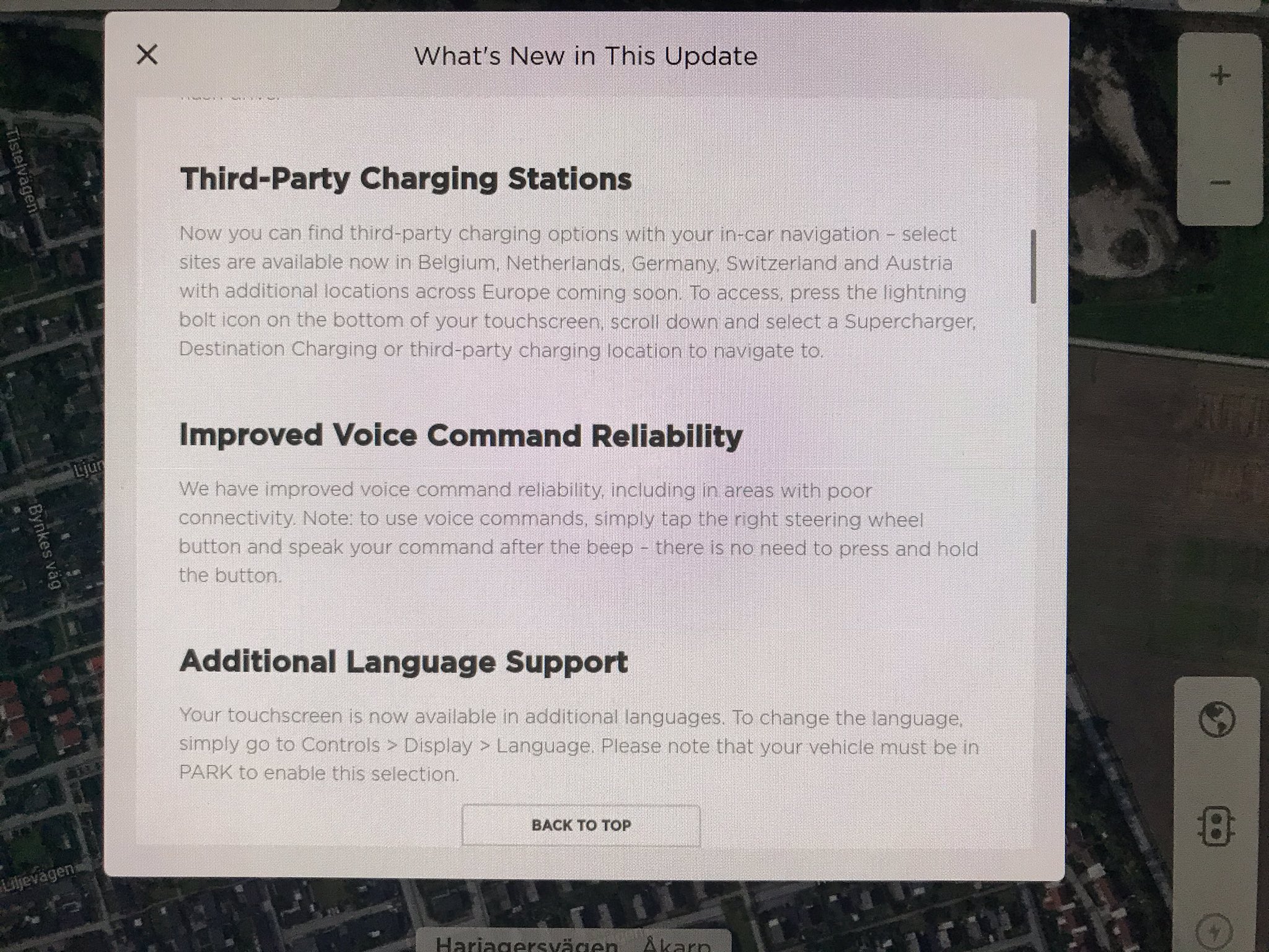 For China: This release also includes new maps on the touchscreen. You can now view the maps in satellite view and see nearby points of interest.