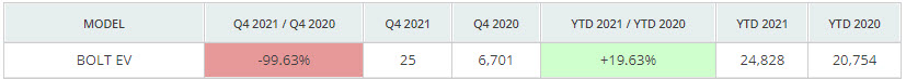 Part of the reason for the disappointing final quarter was due to the Bolt EV, amassing just 25 sales between October and December.